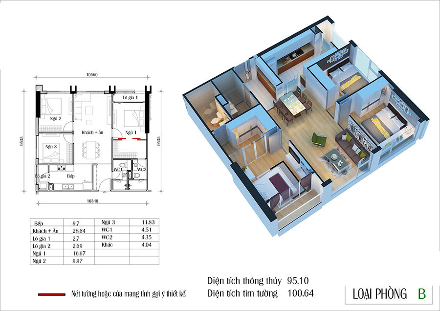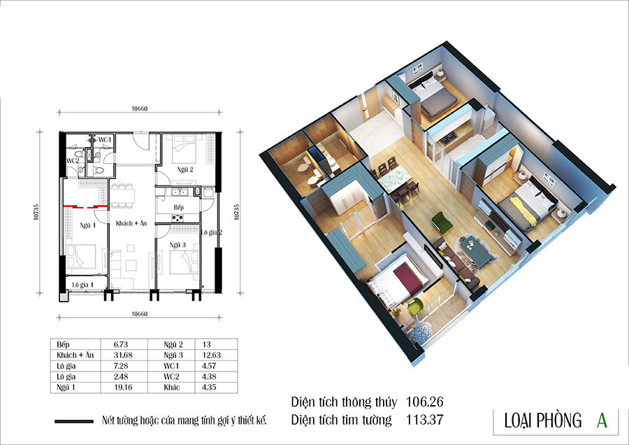- Căn hộ 3 phòng ngủ (124-129m²): Loại hình này phù hợp với các gia đình có từ 3-4 thành viên, hoặc các gia đình đa thế hệ. Diện tích rộng rãi hơn mang lại sự thoải mái trong sinh hoạt, đồng thời có thể bố trí thêm một phòng làm việc, phòng đọc sách hoặc phòng thờ, tùy theo nhu cầu.